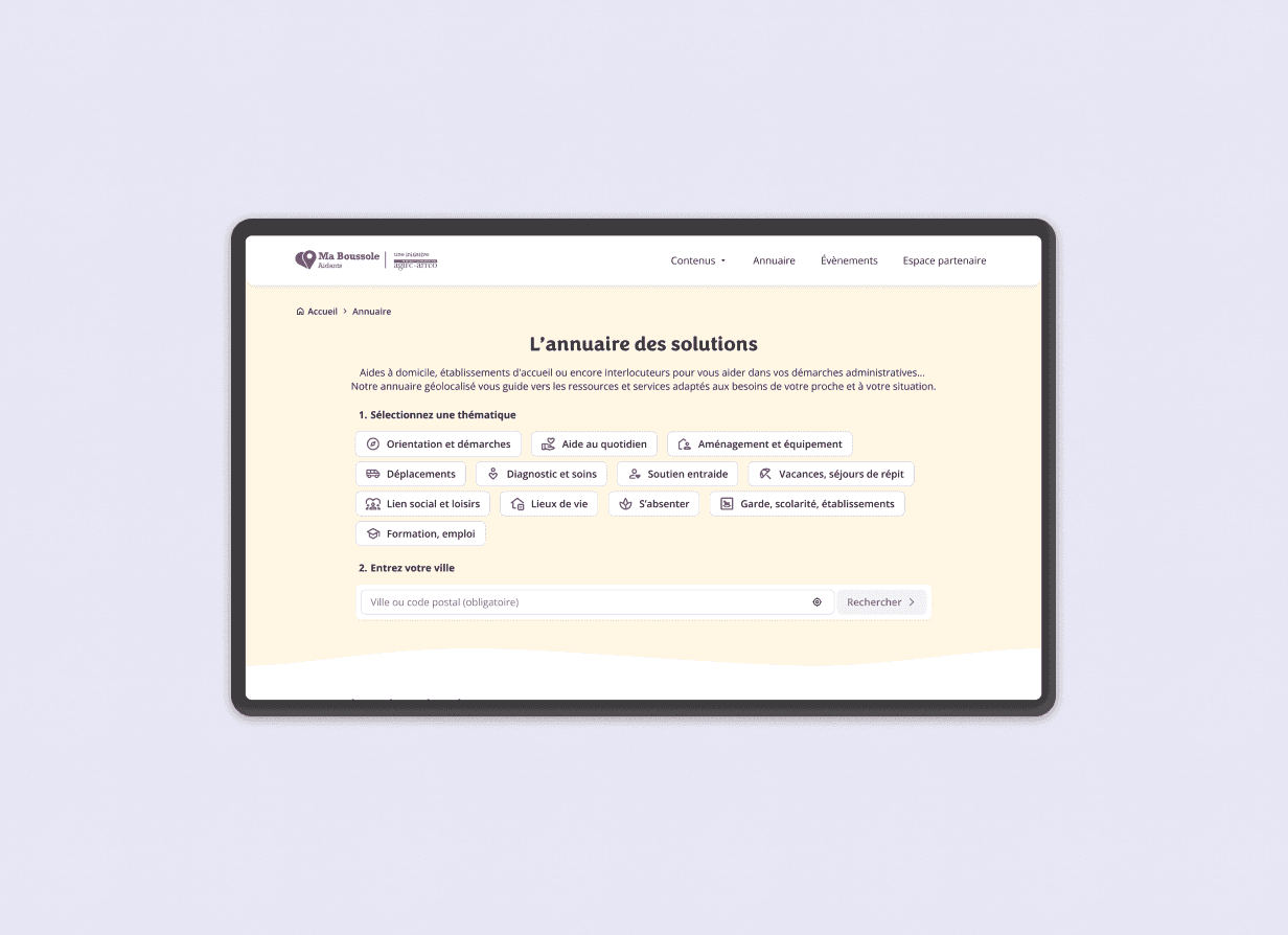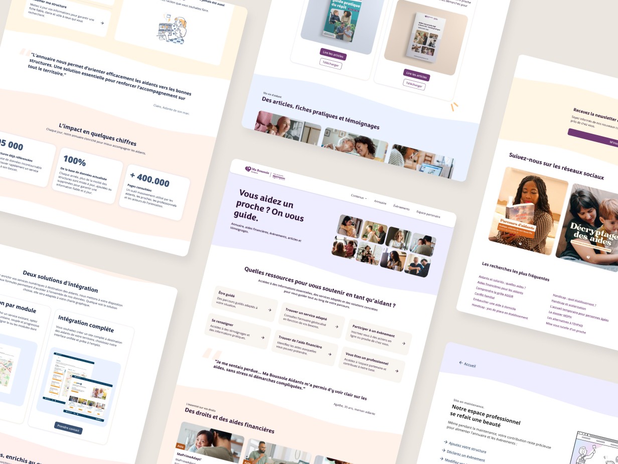 Née en 2019, Ma Boussole Aidants est une coopérative qui facilite le quotidien des aidants. Sans Design System établi, chaque composant, chaque livrable existait de façon isolée : freinant la cohérence du produit et la collaboration entre design et tech. Objectif : créer Lina from scratch, une base solide pour faire grandir Ma Boussole Aidants.