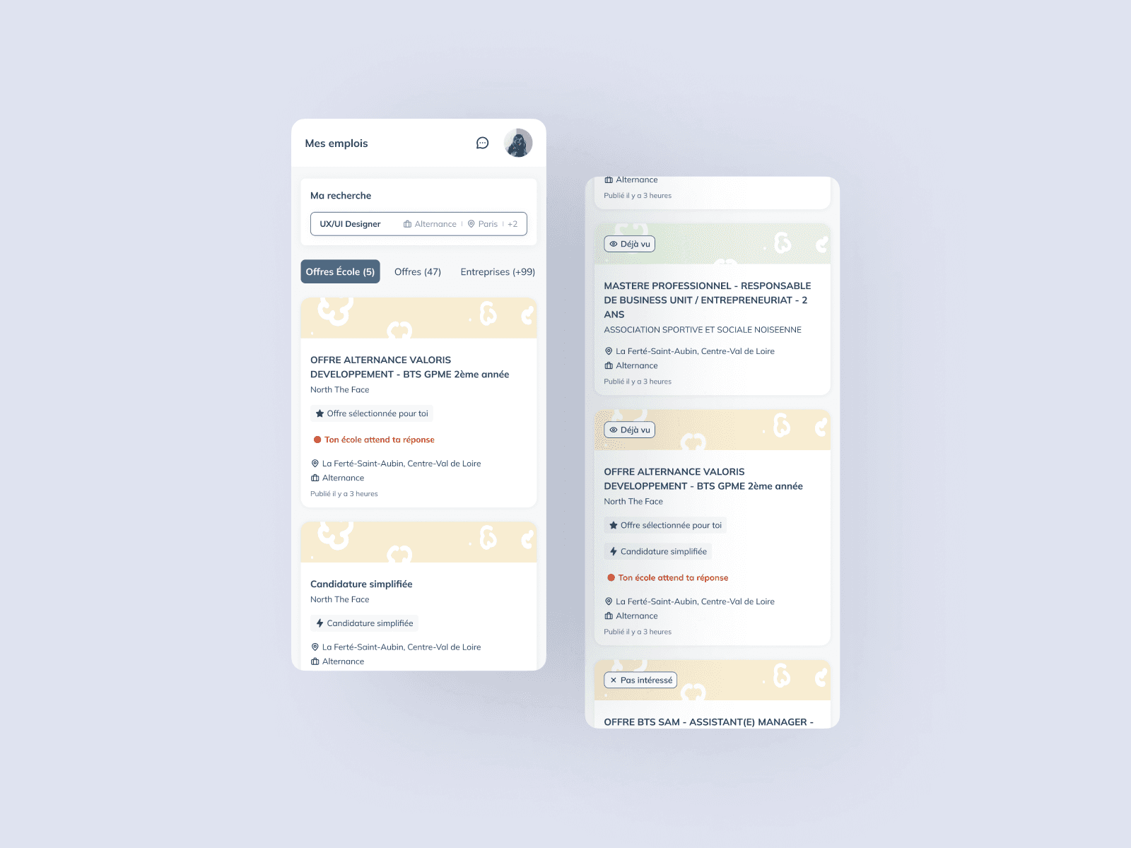 Les écoles gèrent désormais leurs événements en autonomie complète, création, suivi des participants, visibilité sur la disponibilité de chaque étudiant. Côté étudiants, la feature est adoptée : inscription, agenda, historique. En interne, la suppression de la gestion manuelle a libéré l'équivalent de 2 jours par sprint.