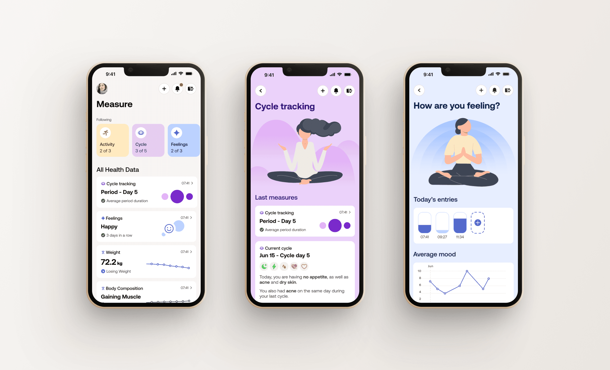 L’objectif est de créer un premier aperçu de ce que pourrait être l’application Withings avec la possibilité de suivre le cycle hormonal en direct. *Projet en collaboration avec des product designers de chez Withings.