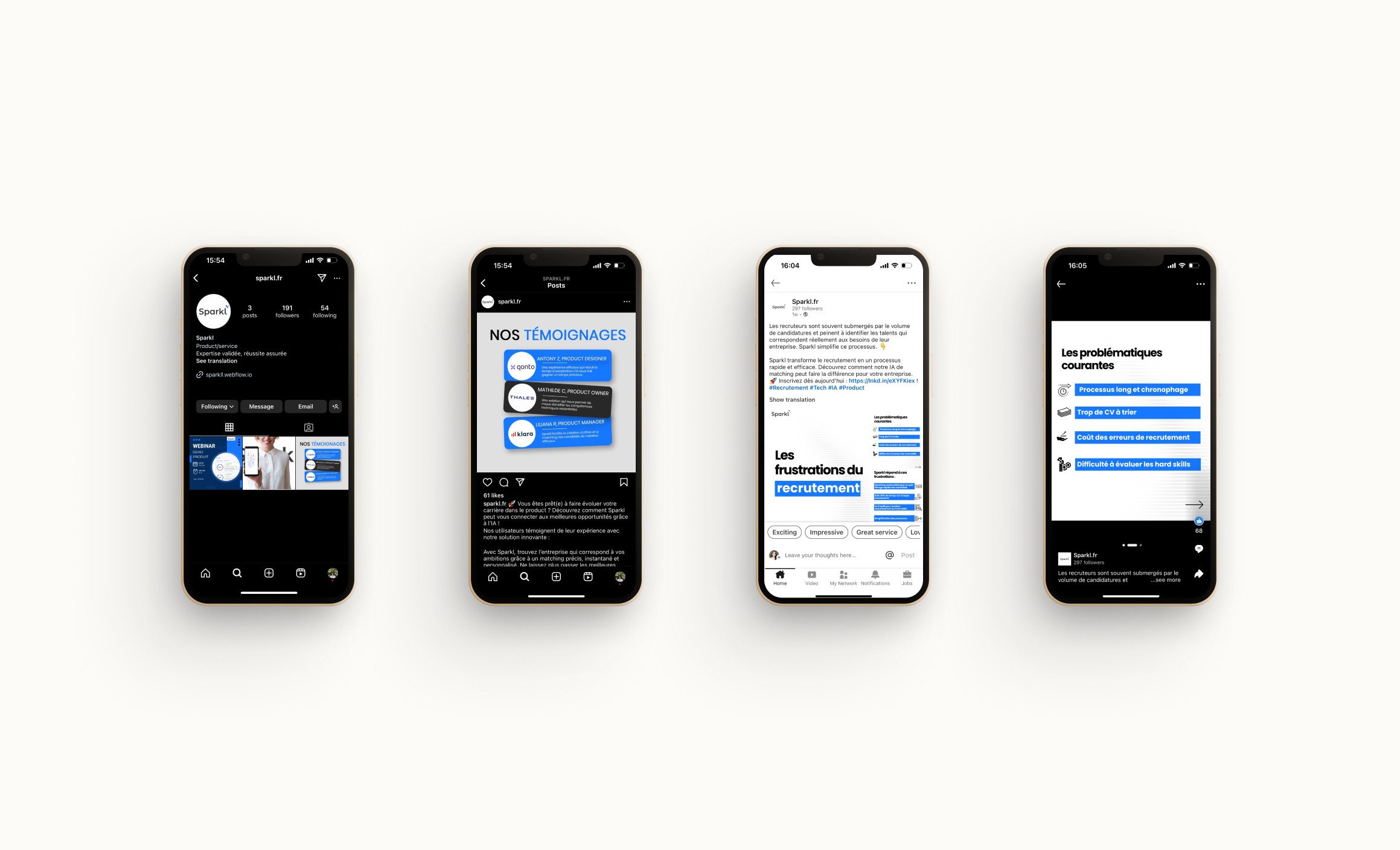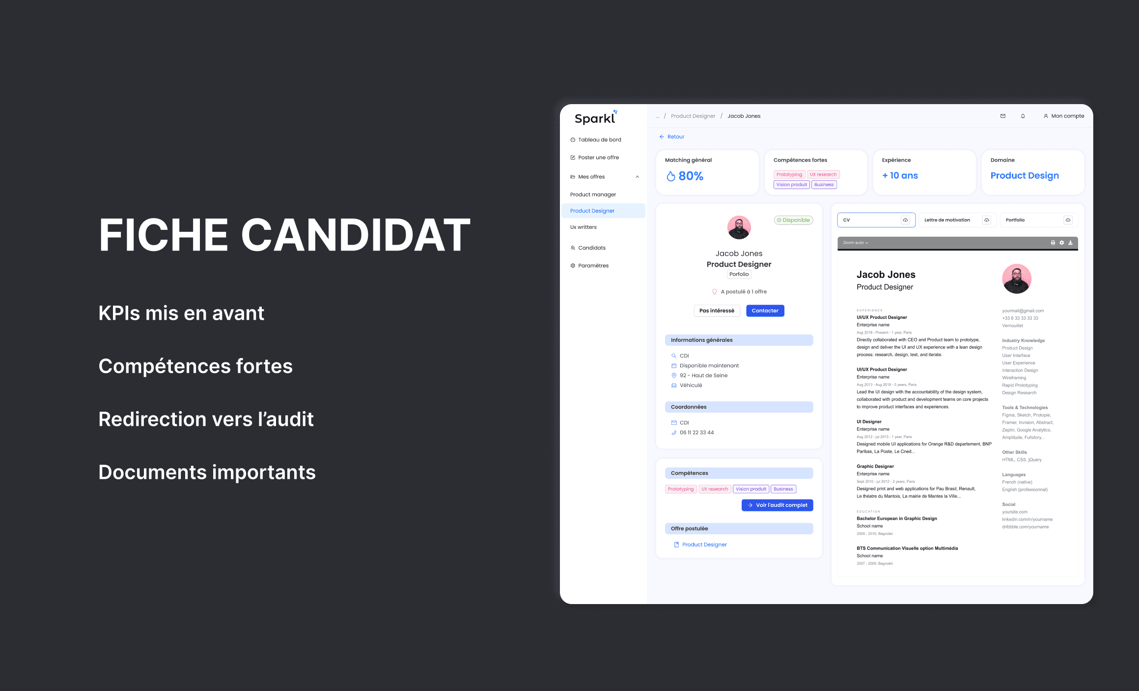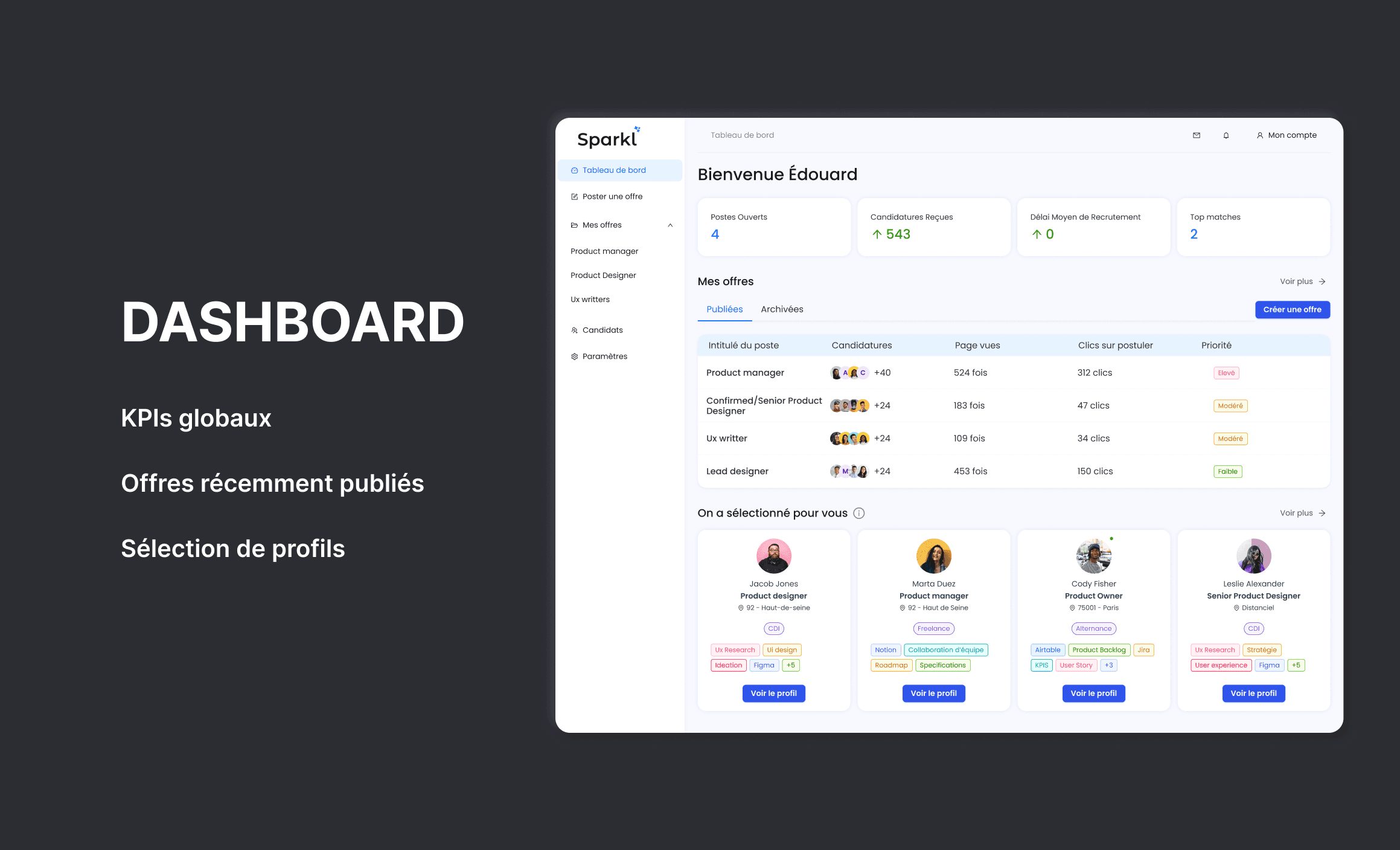 Le constat est simple : 63 % des entreprises peinent à recruter le bon profil. Avec la digitalisation des PME, le besoin de nouveaux talents se fait sentir. Lorsque ce besoin devient pressant, une personne sera désignée pour gérer le recrutement, souvent celle qui maîtrise le mieux les exigences du poste à pourvoir. Sparkl est un projet entrepreneurial né en décembre 2023. Nous sommes une équipe de six personnes avec une belle culture product, j'ai participé à toutes les étapes de sa conception.