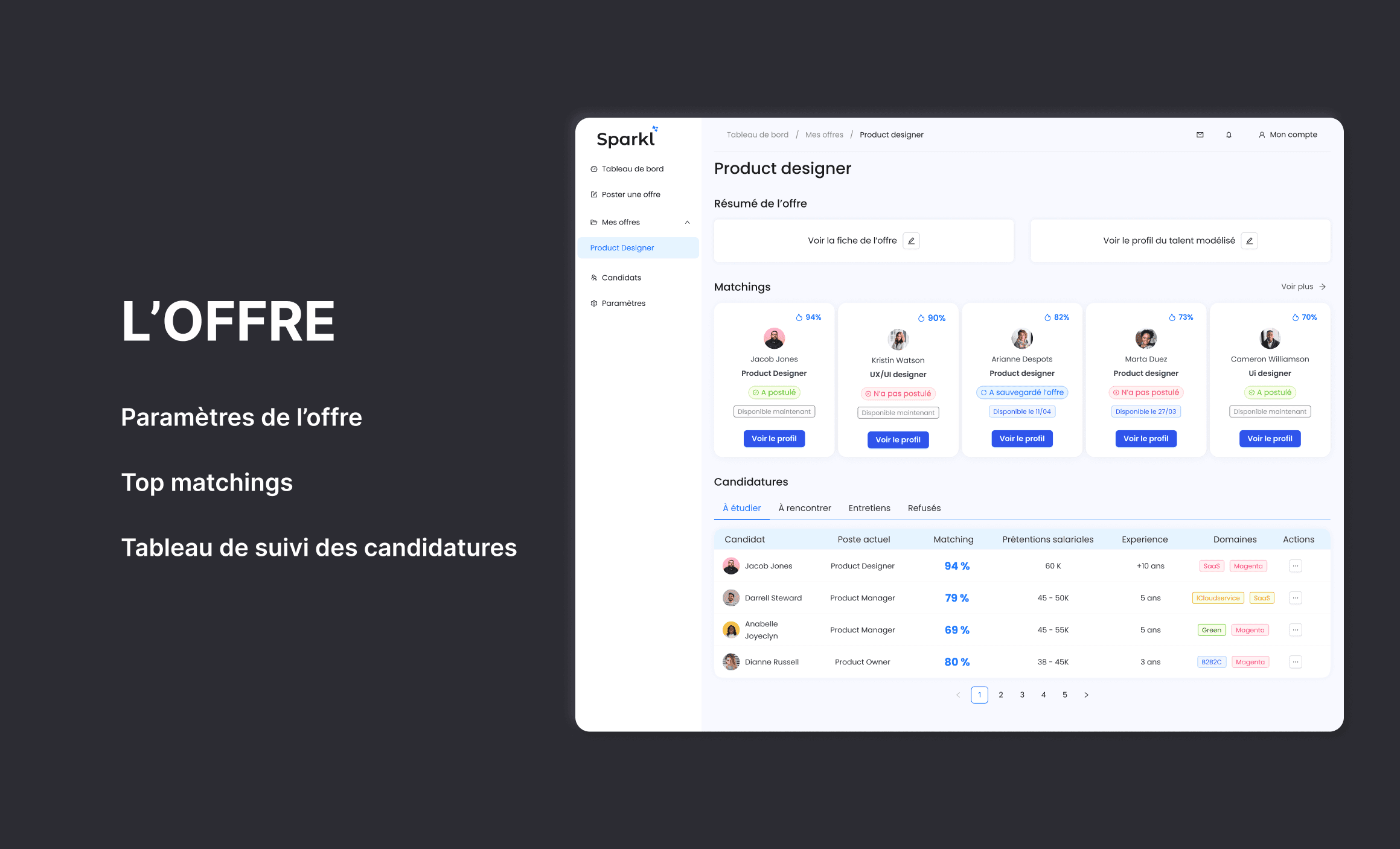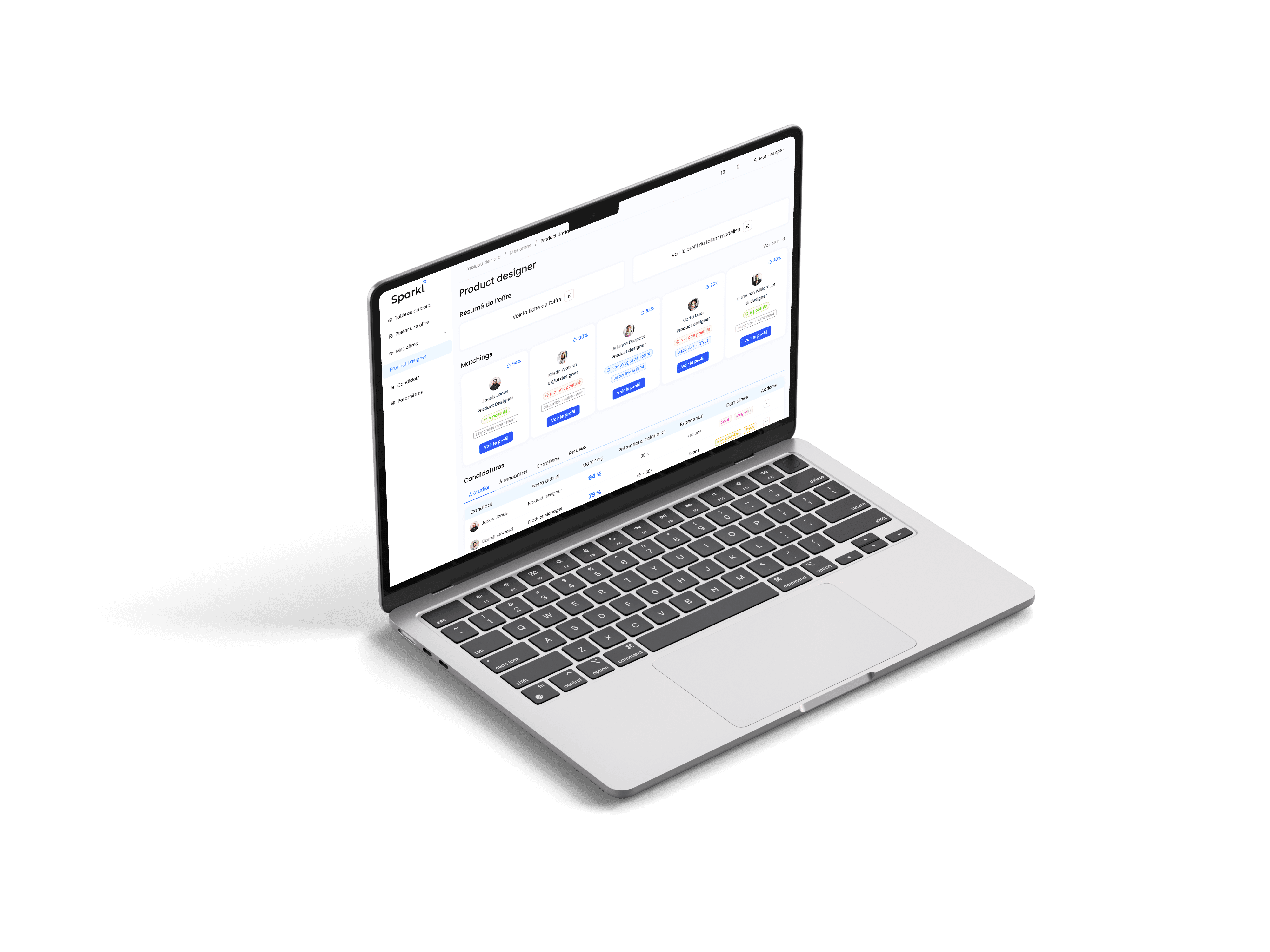 Sparkl facilite le travail des chargés de recrutement en rendant le processus plus simple et plus efficace. Notre plateforme automatise la création des offres d'emploi et propose des exemples de profils recherchés, ce qui permet aux chargés de se concentrer davantage sur l'aspect humain du recrutement. En outre, notre système de matching intelligent aide à sélectionner les talents en fournissant des recommandations basées sur les compétences des candidats et les besoins des entreprises. En allégeant certaines tâches administratives, Sparkl permet aux chargés de recrutement de consacrer plus de temps à établir des relations significatives avec les candidats et à trouver le bon profil pour leur entreprise.